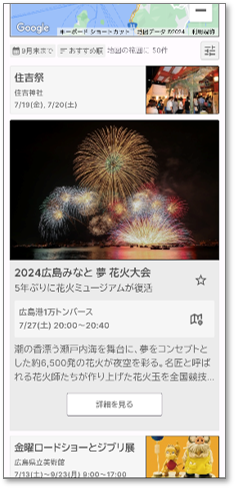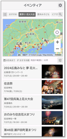 かたちでイベント情報を集め、1つのサービスにまとめて掲載します。 - お祭り・花火大会・イルミネーション・フェス・子ども向けイベント・季節の行事など、多様なイベントがひとつの画面から探せるので、「どこを見ればいいのか分からない」という悩みを減らします。