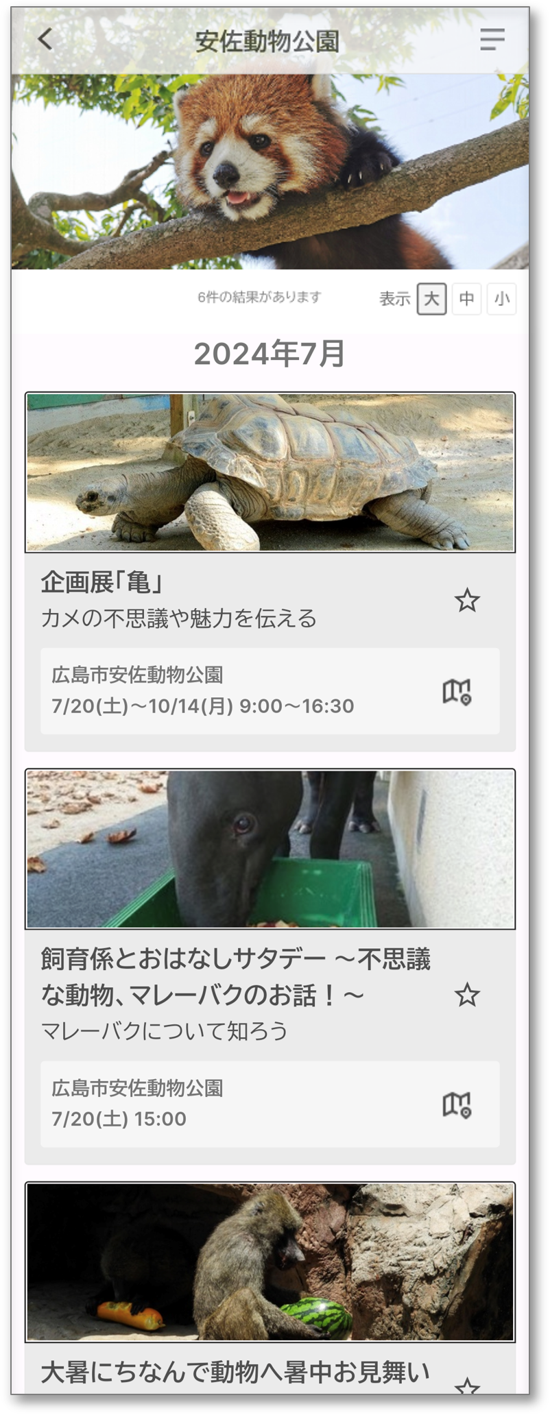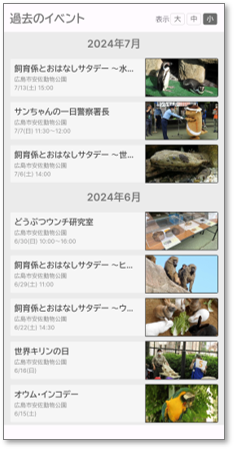 - 主催団体ページでは、団体からのお知らせや予定イベントを一覧で見られ、コミュニティとのつながりを強化します。